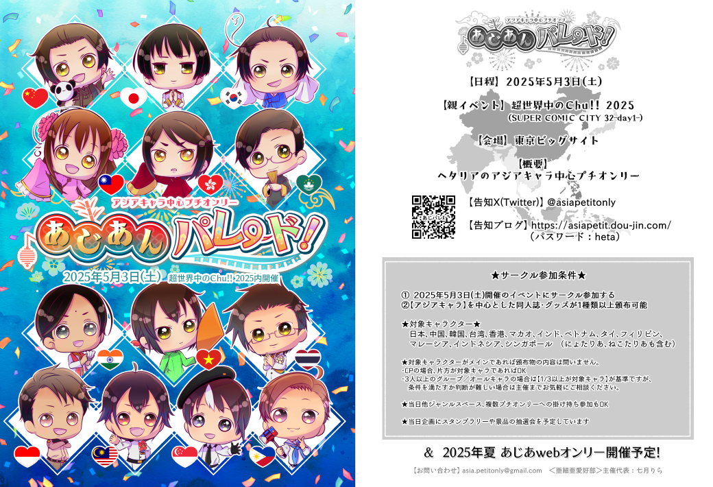 ヘタリアのあじあキャラ中心プチオンリーの告知ブログです。