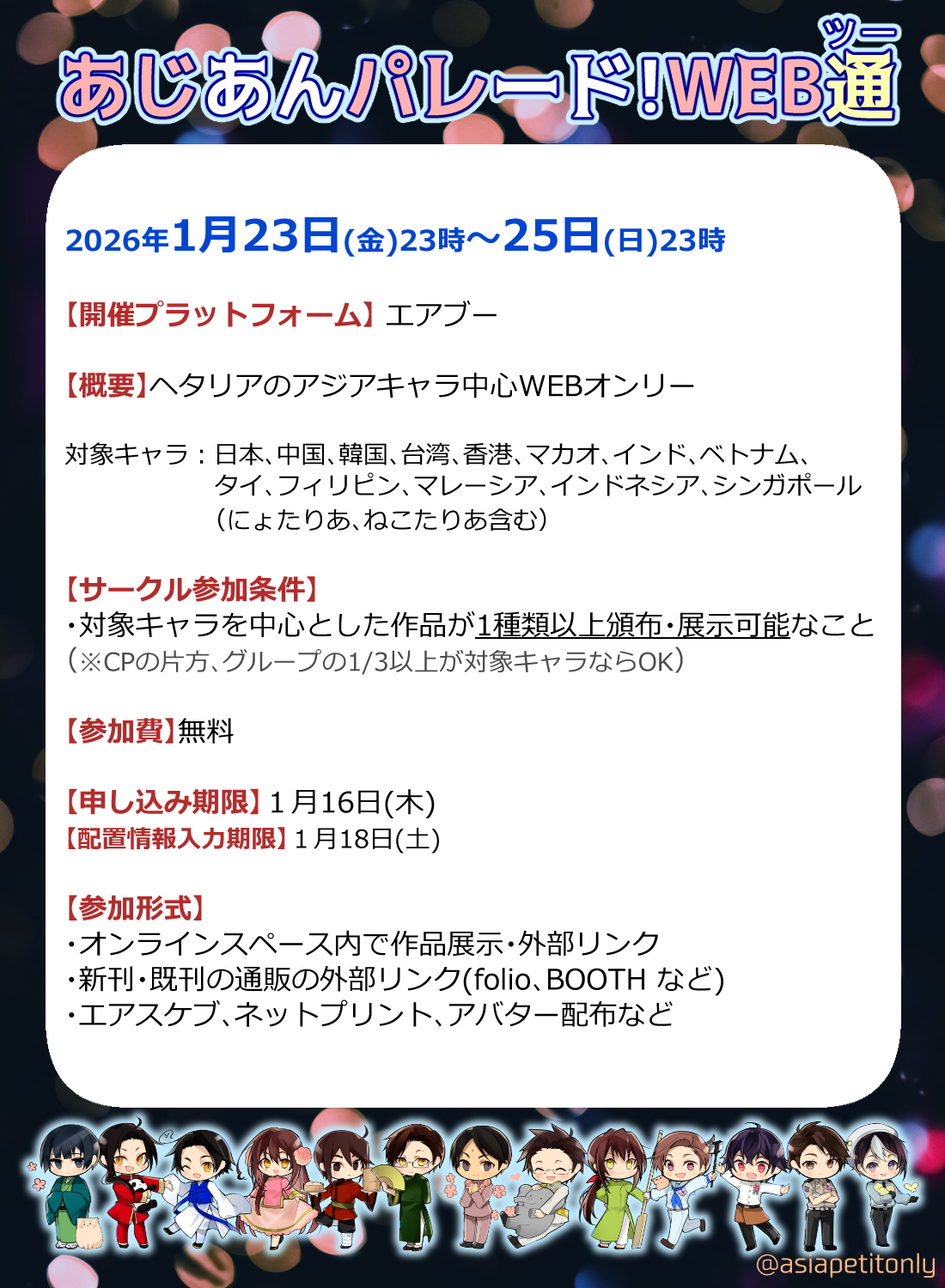 【概要】 ヘタリアのアジアキャラ中心のWEBオンリー